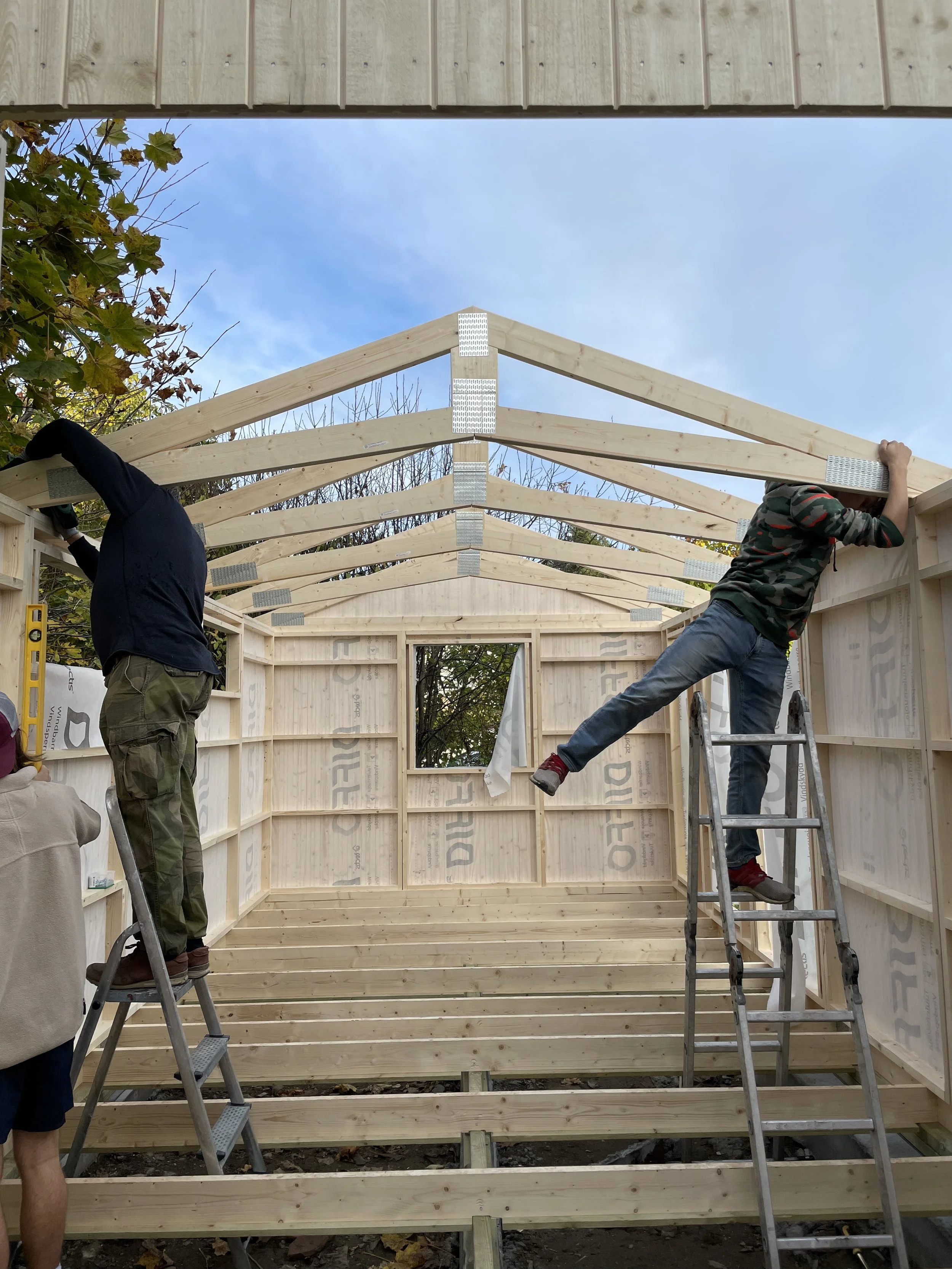 Navnet Solhøi kommer faktisk fra huset vårt, da vi skulle bygge studioet i hagen viste det seg at vi måtte søke kommunen om lov først fordi huset vi bor i er et kulturminne så da kan man ikke sette opp hva som helst. Vi oppdaget da at i skjøtet står det at huset (eller eiendommen) heter Solhøi - jeg er svak for gamle ting så dette passet perfekt! Vi fikk klarsignal fra kommunen sommeren 2021 og satte igang “Prosjekt Anneks/Studio”. Her er noen bilder fra byggingen - og hvis du vil se mer kan du sjekke ut highlights på instagram.
